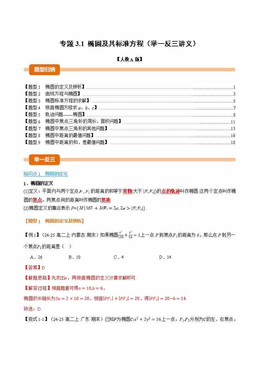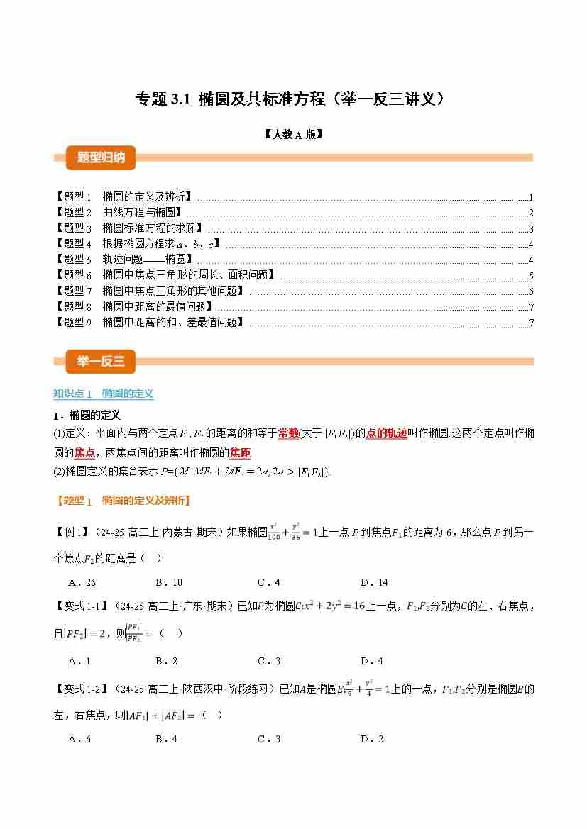 专题3.1 椭圆及其标准方程(举一反三讲义)(学生版)