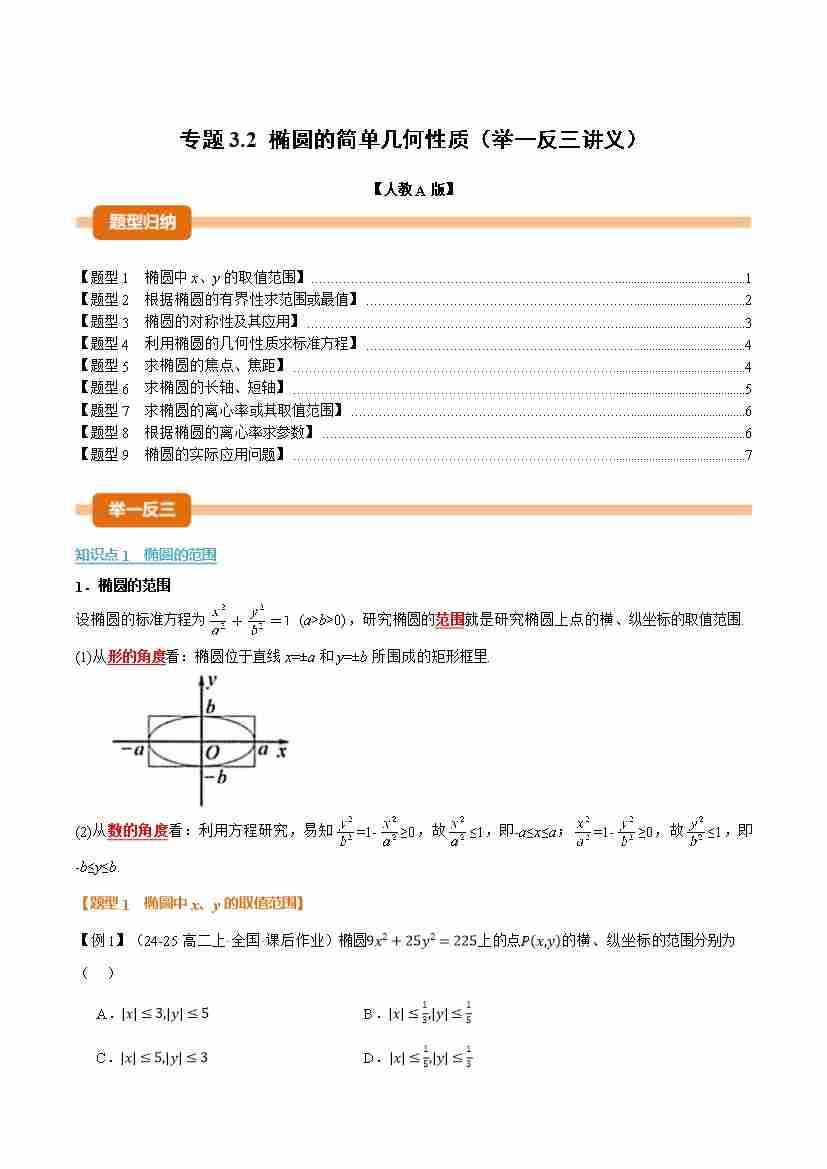 专题3.2 椭圆的简单几何性质(举一反三讲义) (学生版)