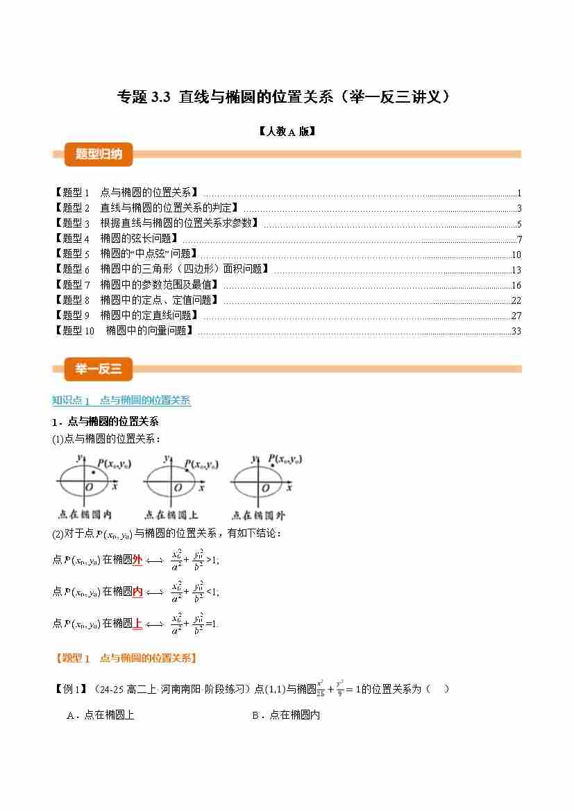 专题3.3 直线与椭圆的位置关系(举一反三讲义) (学生版)