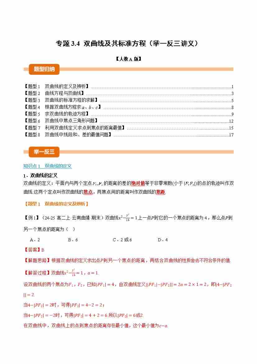 专题3.4 双曲线及其标准方程(举一反三讲义) (教师版)