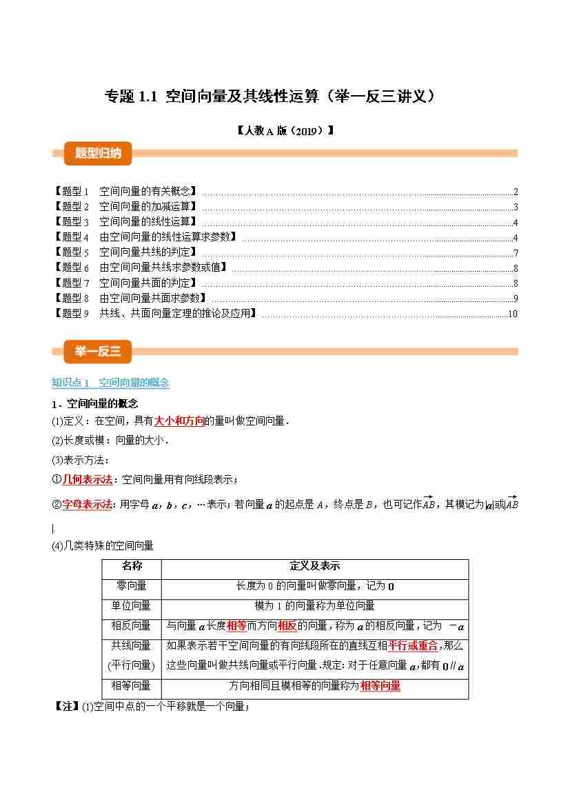 专题1.1 空间向量及其线性运算(举一反三讲义)(学生版)
