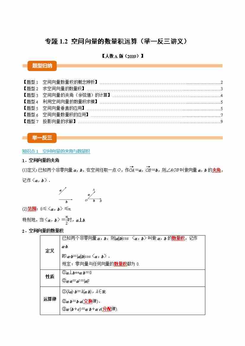 专题1.2 空间向量的数量积运算(举一反三讲义)(教师版)