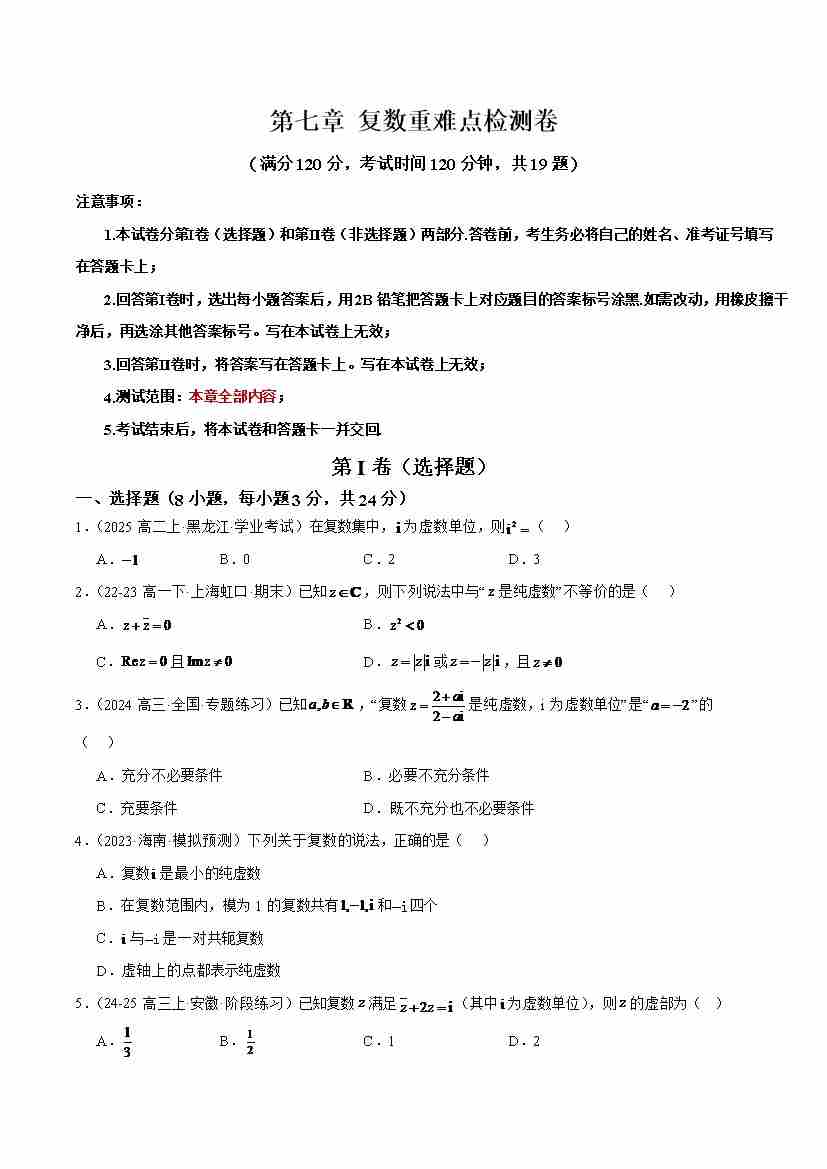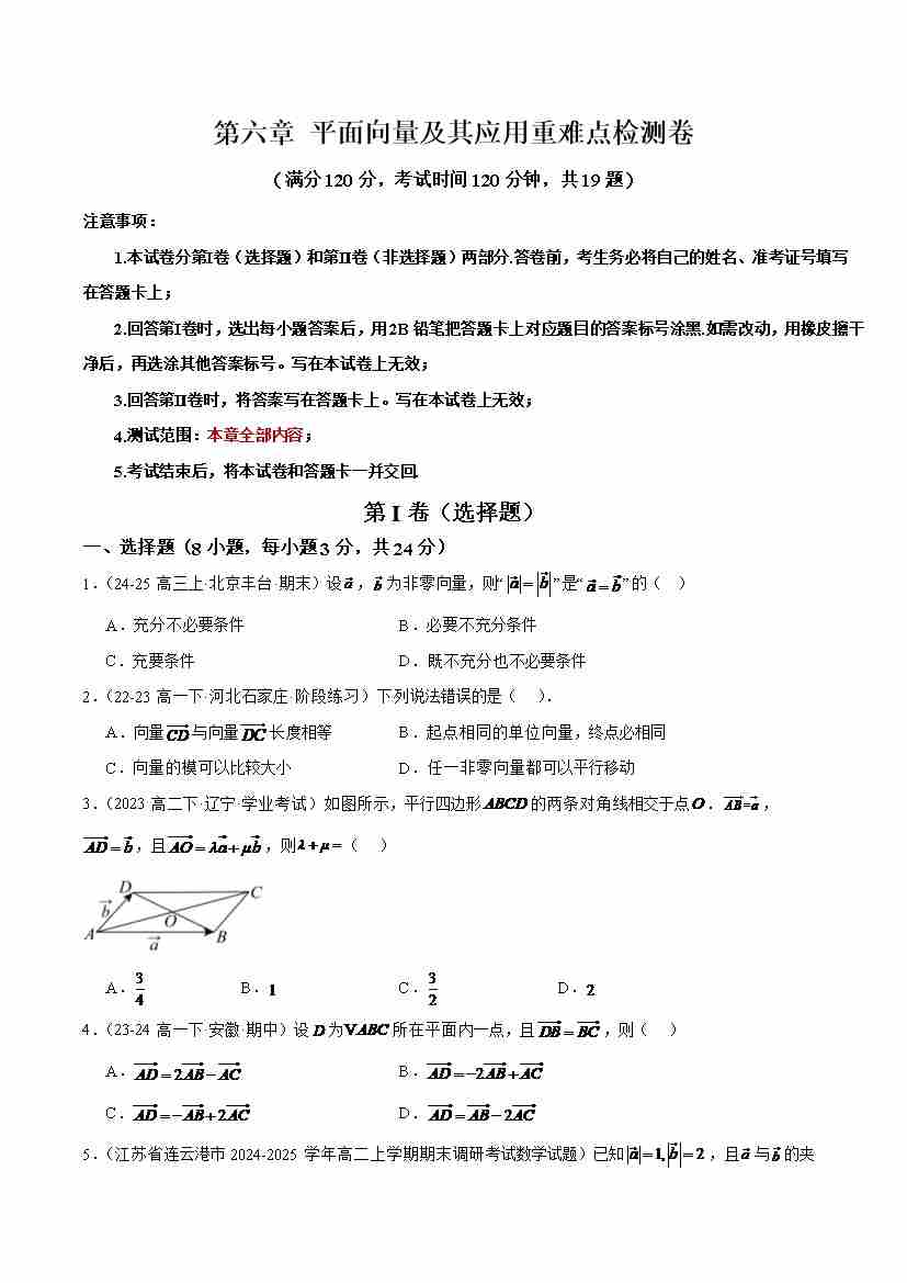 第六章 平面向量及其应用重难点检测卷 (学生版).