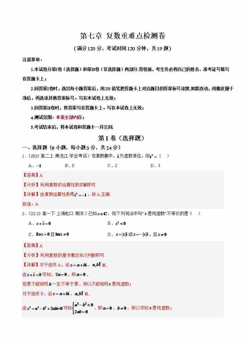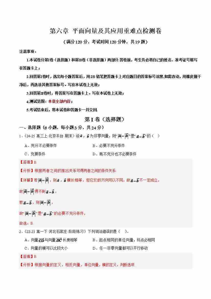 第六章 平面向量及其应用重难点检测卷 (教师版).