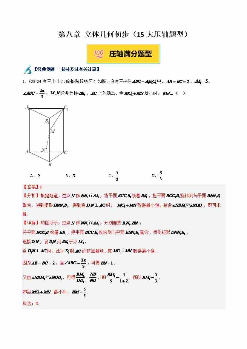 第八章 立体几何初步(15大压轴题型)(教师版)