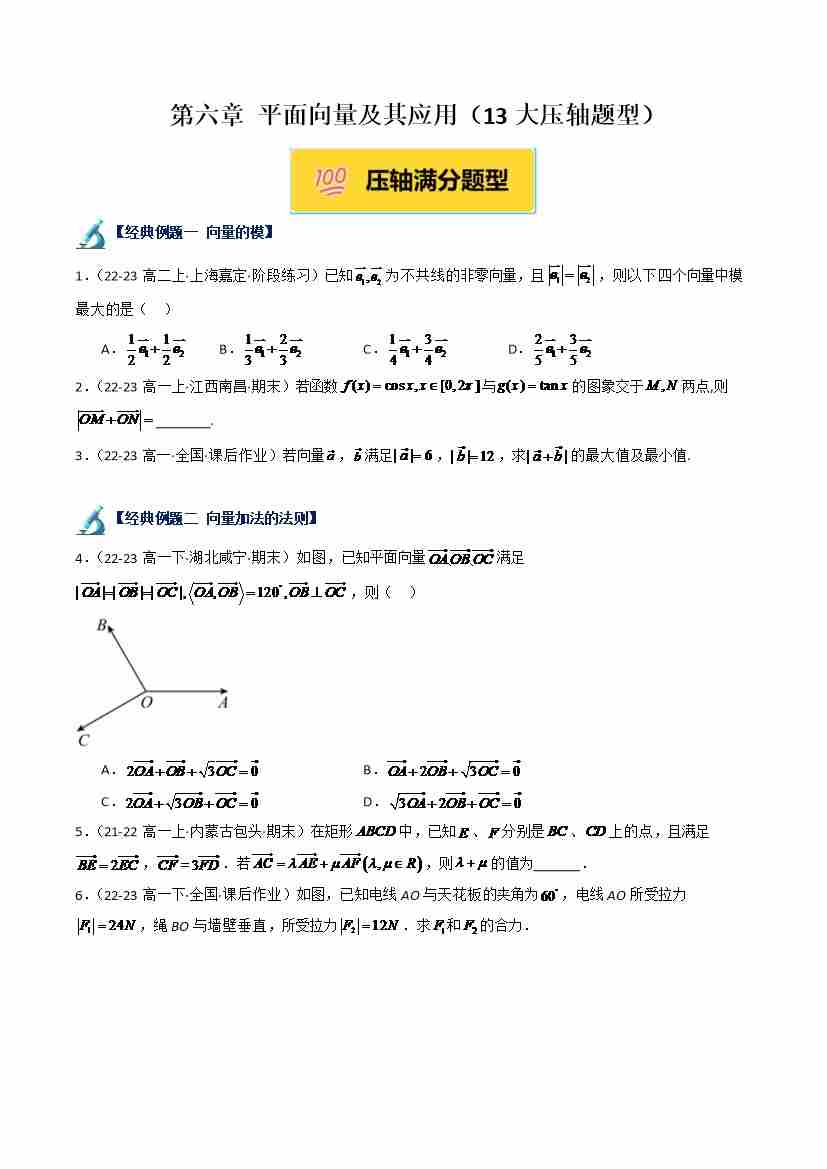 第六章 平面向量及其应用(13大压轴题型)(学生版)