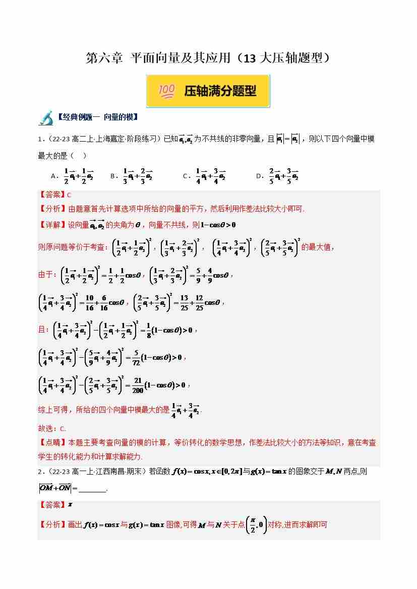 第六章 平面向量及其应用(13大压轴题型)(教师版)