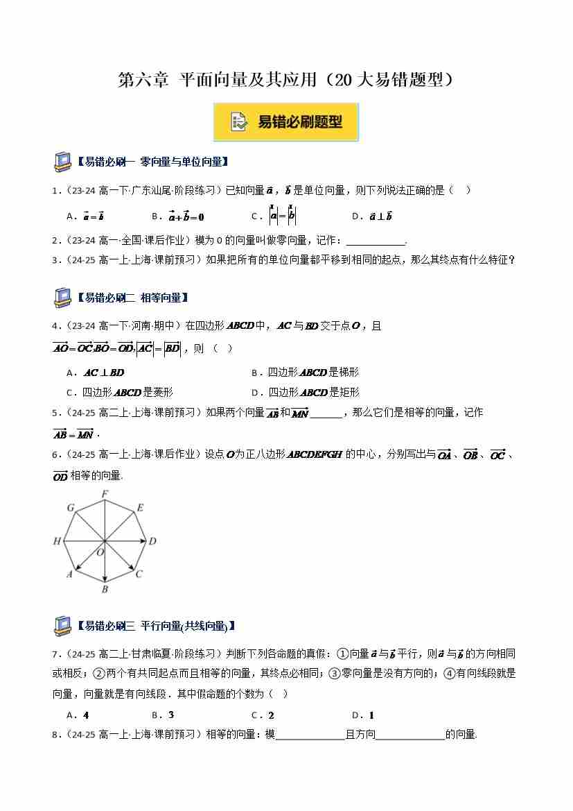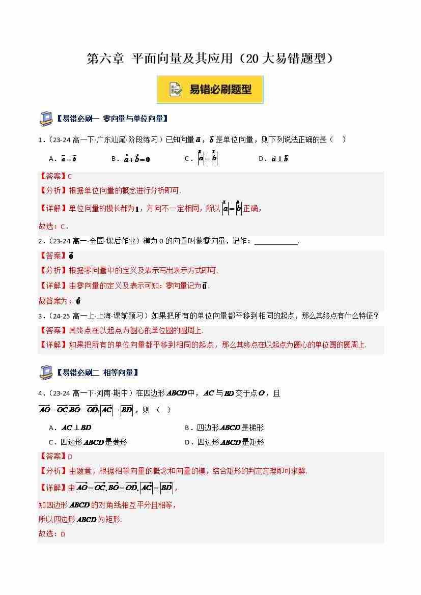 第六章 平面向量及其应用(20大易错题型)(学生版)