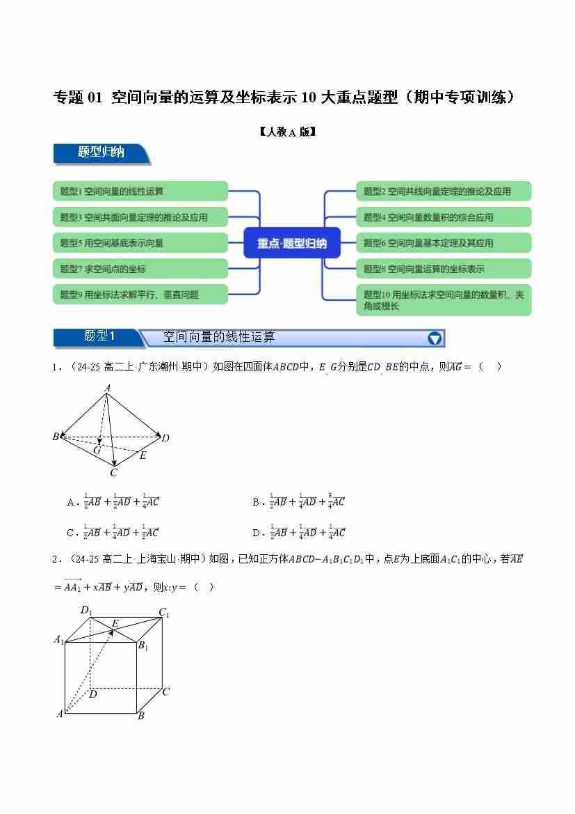 专题01 空间向量的运算及坐标表示10大重点题型(举一反三期中专项训练)(学生版)