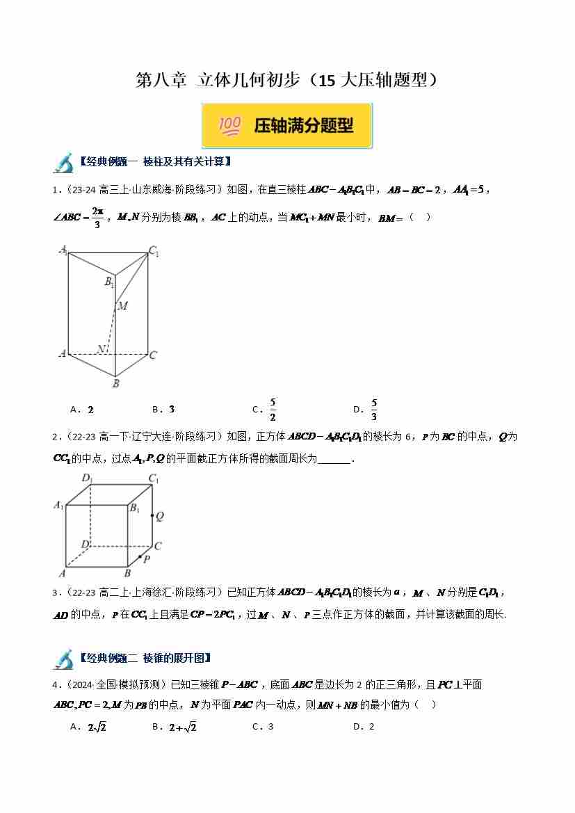 第八章 立体几何初步(15大压轴题型)(学生版)