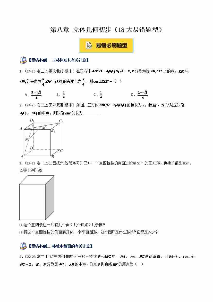 第八章 立体几何初步(18大易错题型)(学生版)