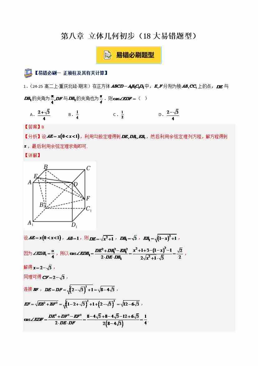 第八章 立体几何初步(18大易错题型)(教师版)