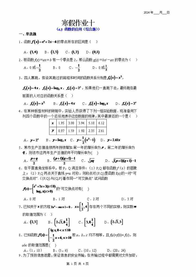 寒假作业10 学生版
