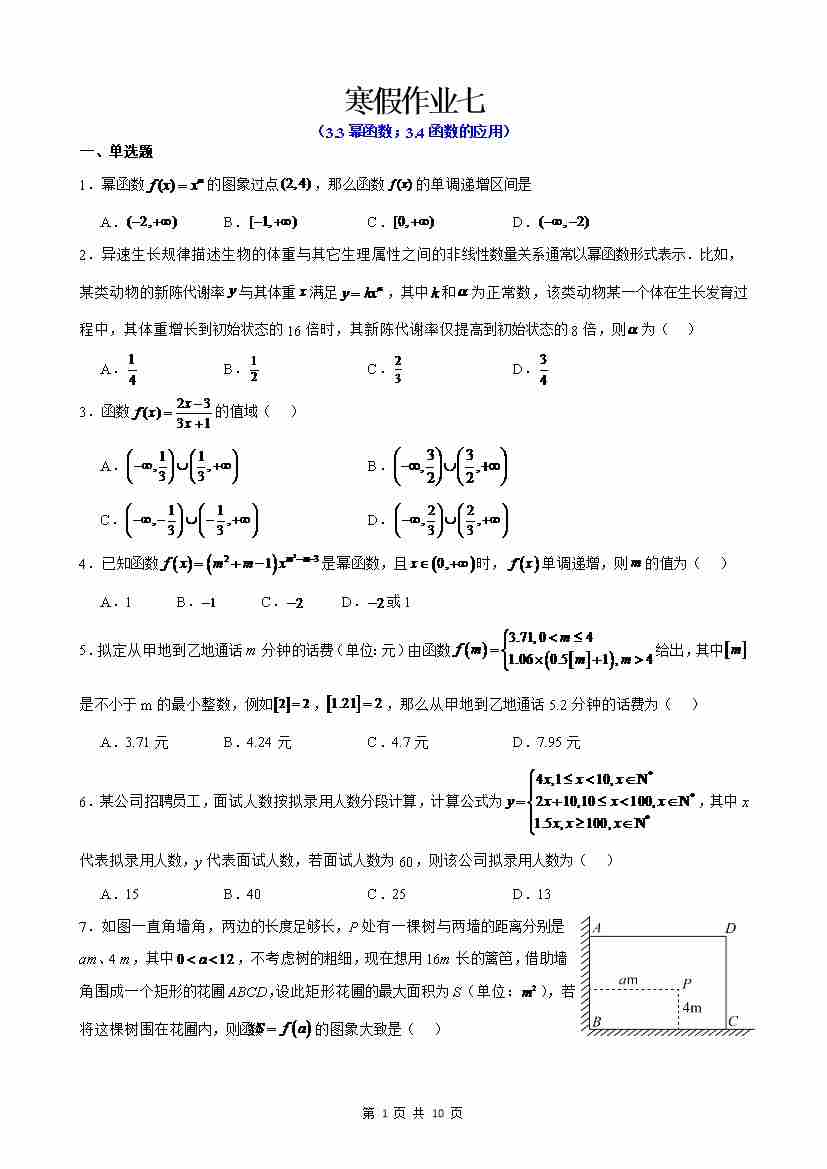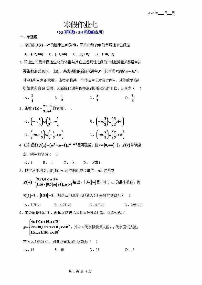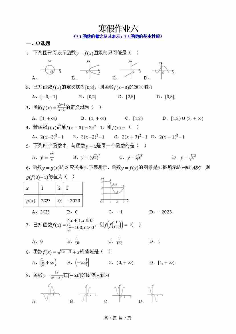 寒假作业7(学生版)