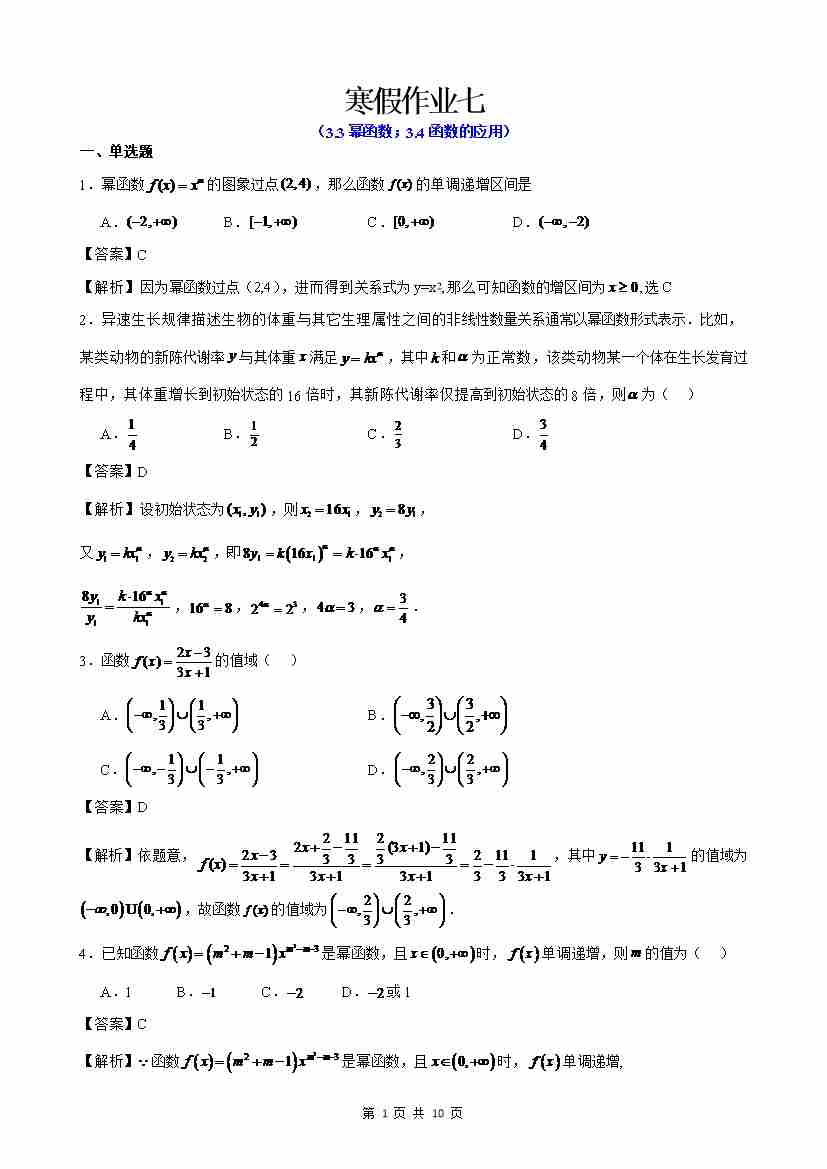 寒假作业7(解析版)