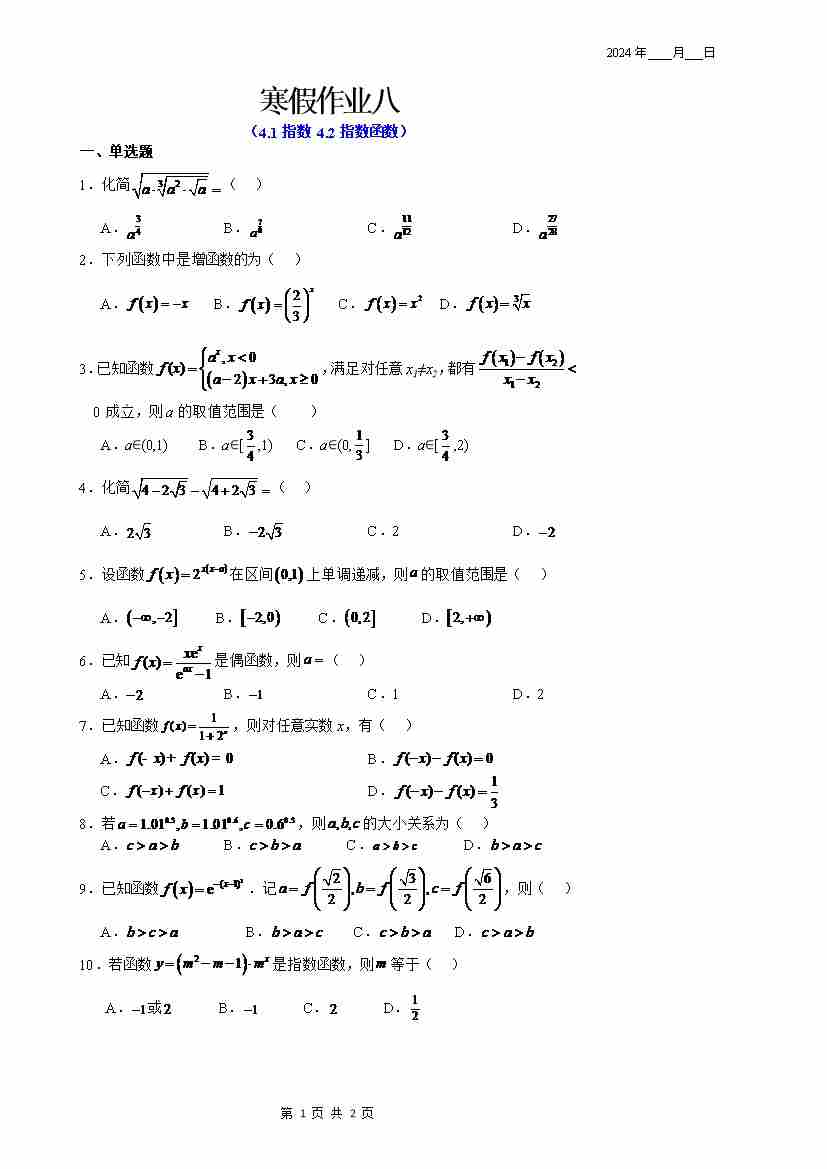 寒假作业8(学生版)