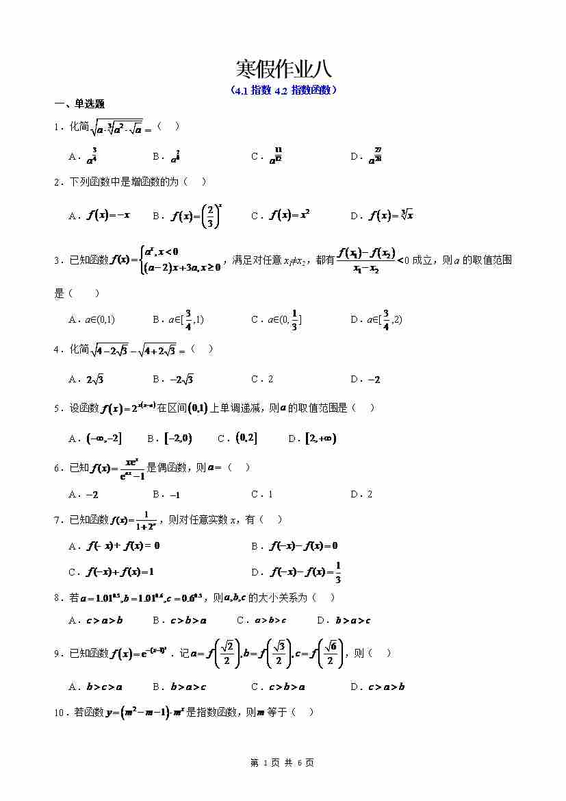 寒假作业6(学生版)