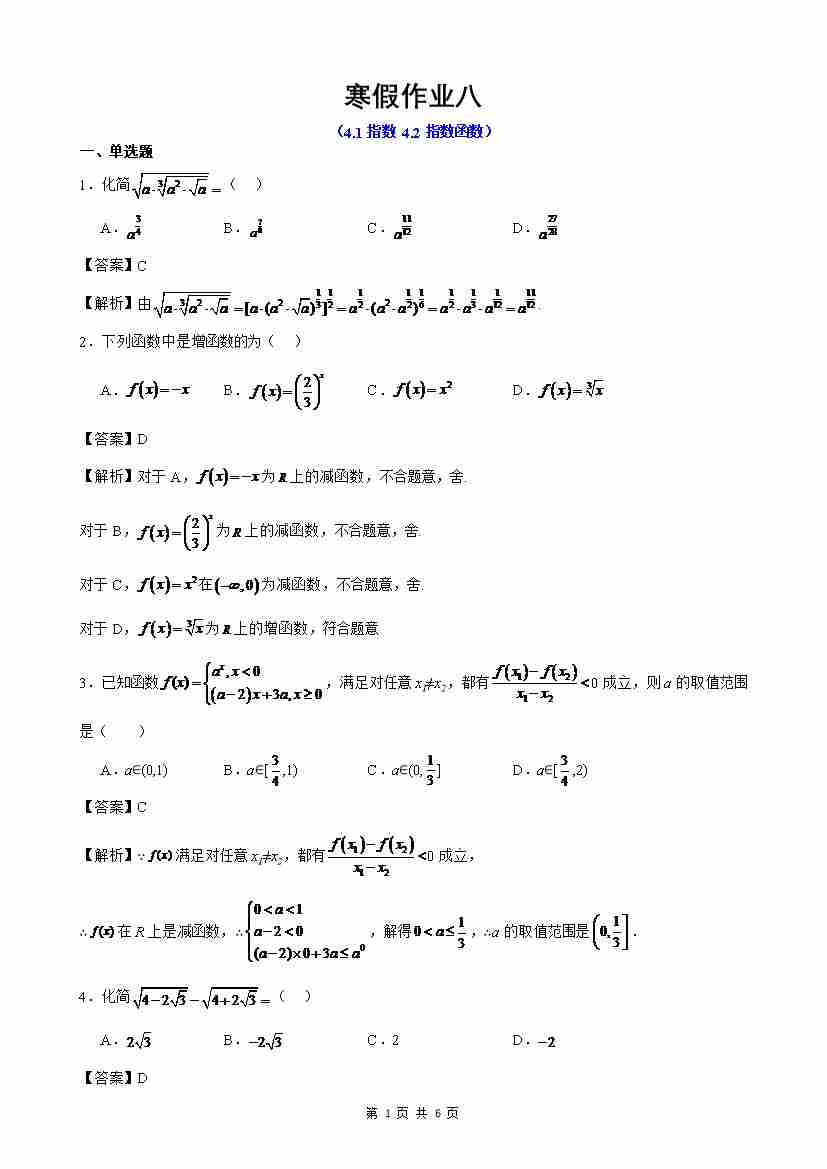 寒假作业6(解析版)