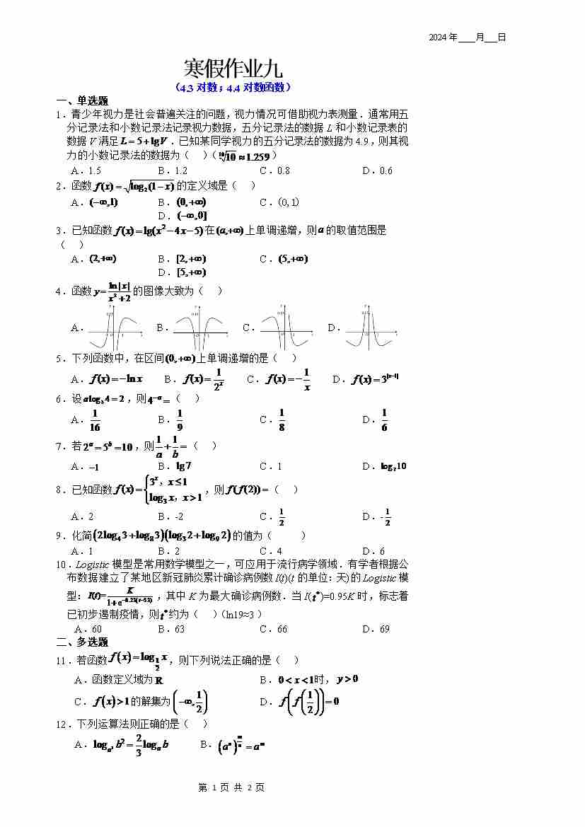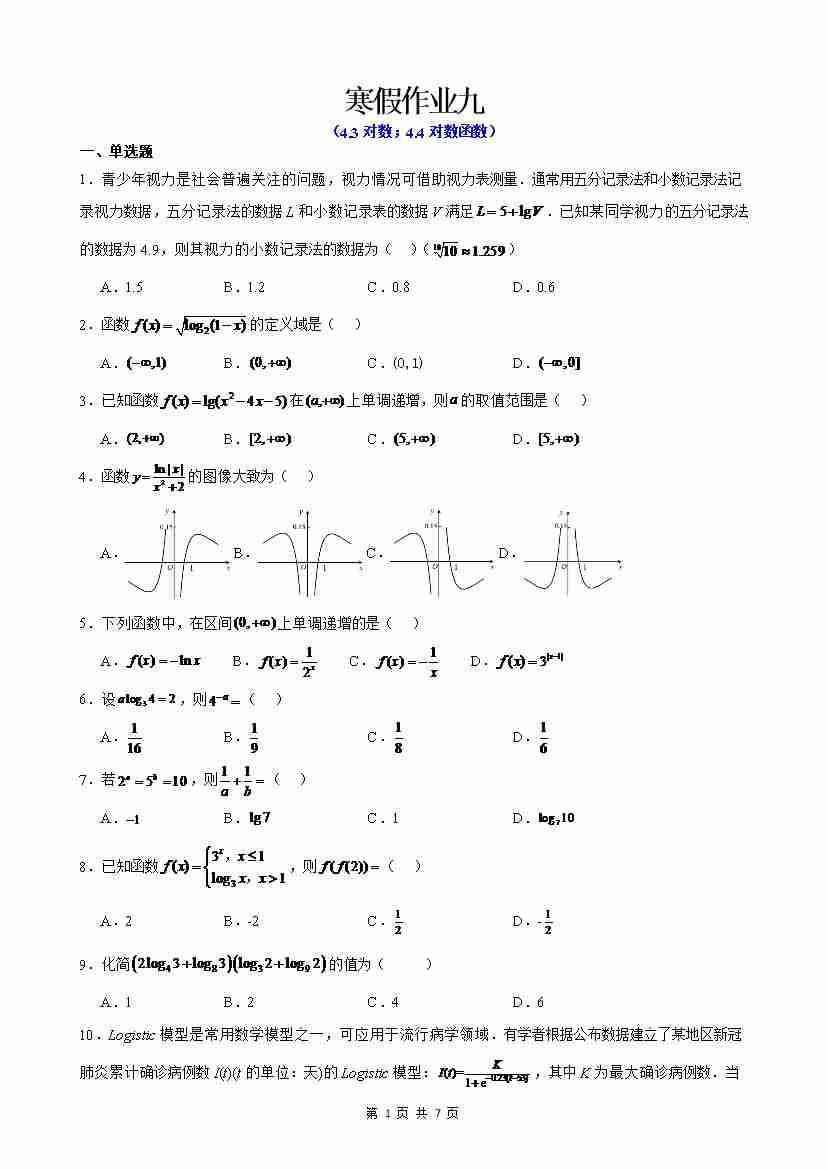 寒假作业9(学生版)