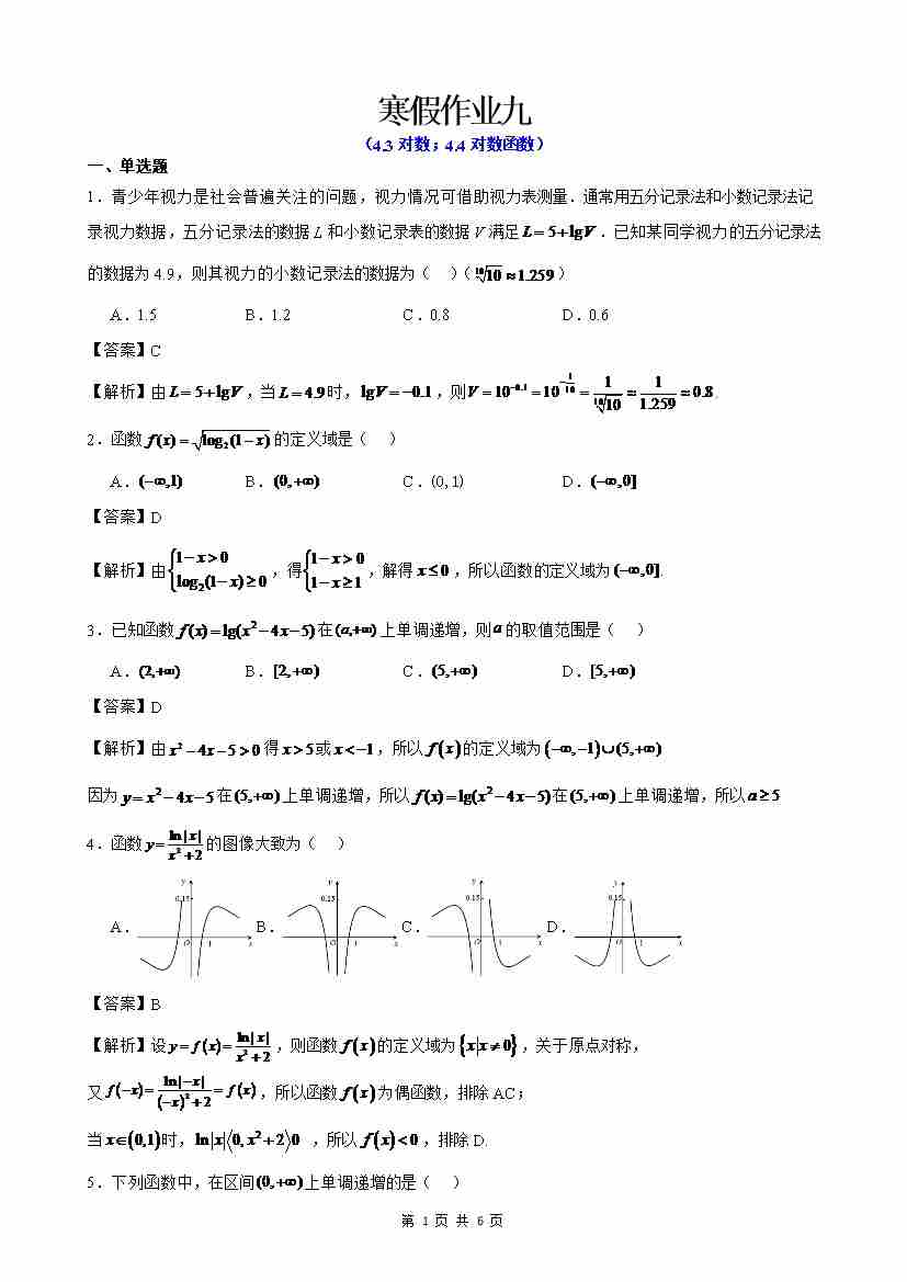 寒假作业9(解析版)