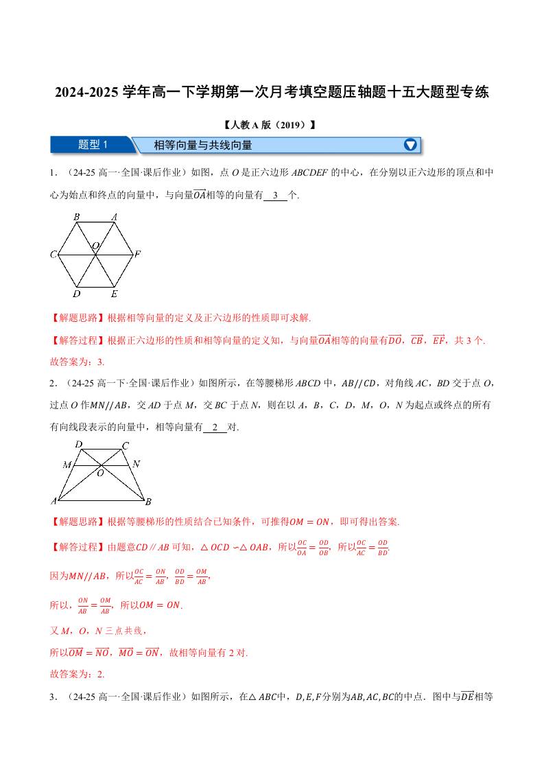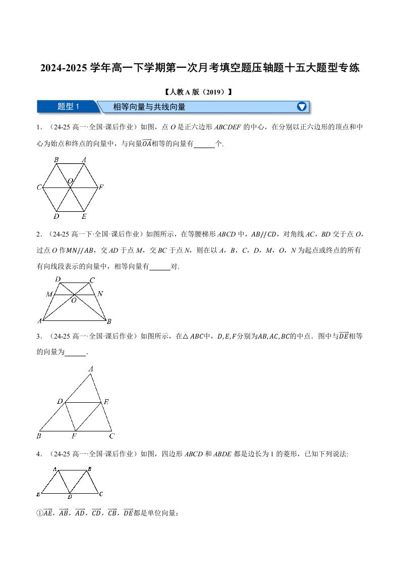高一下学期第一次月考填空题压轴题十五大题型专练(学生版)