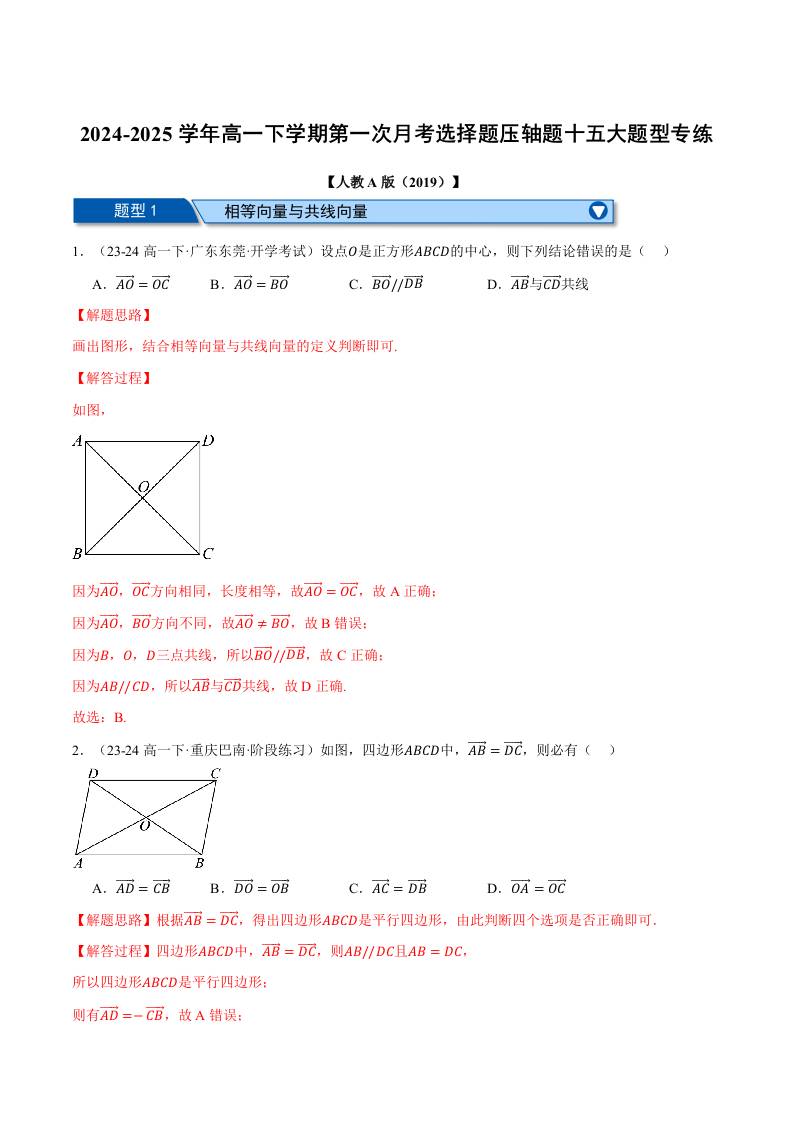 高一下学期第一次月考选择题压轴题十五大题型专练(教师版)