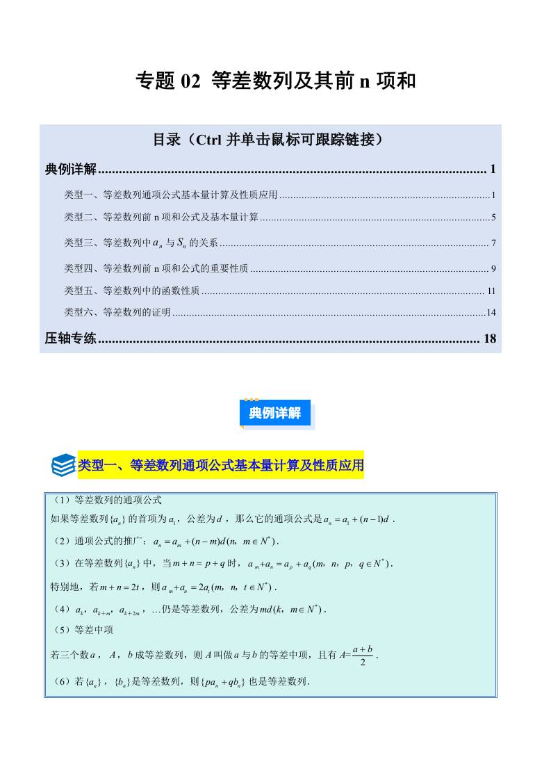 专题02 等差数列(压轴题6大类型专项训练)(教师版)