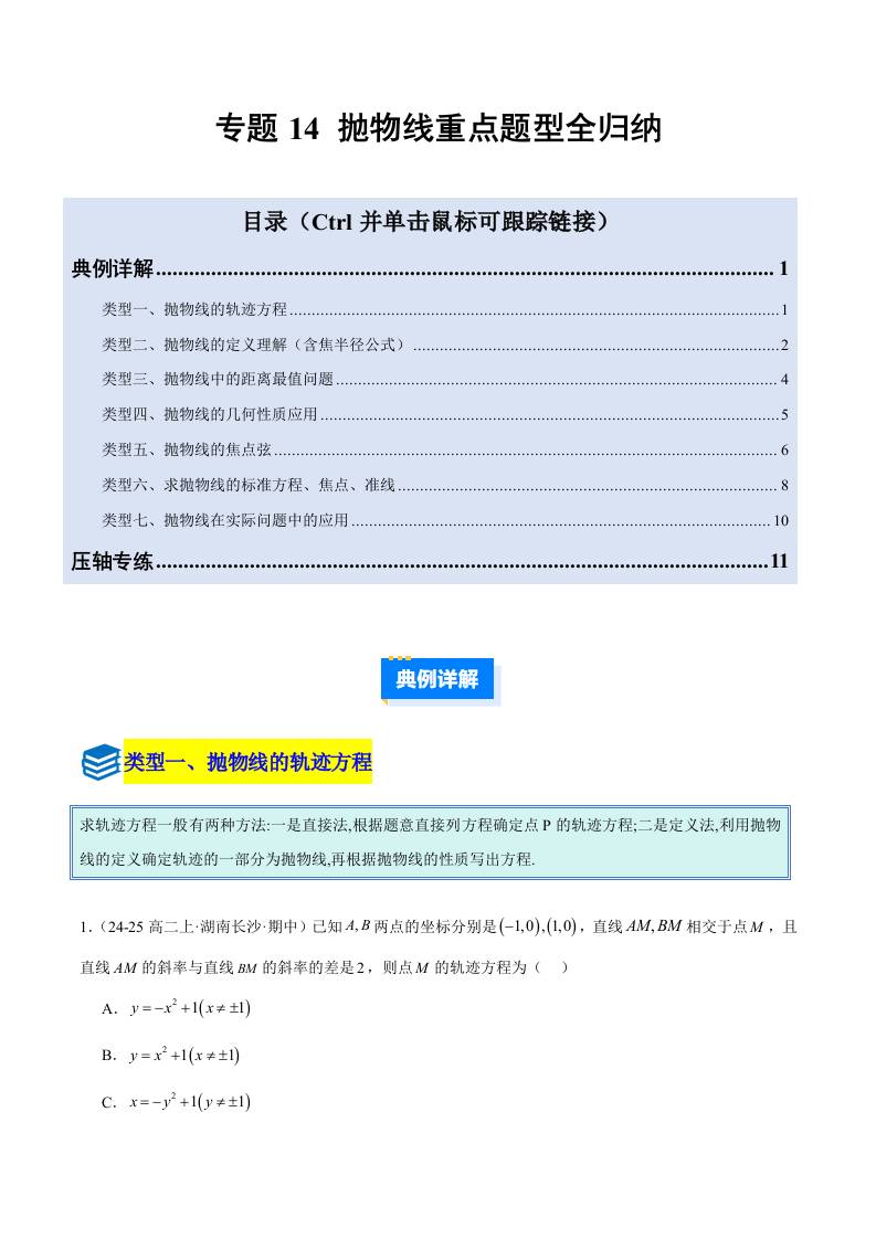 专题14 抛物线重点题型全归纳(压轴题7大类型专项训练)(解析版)(1)