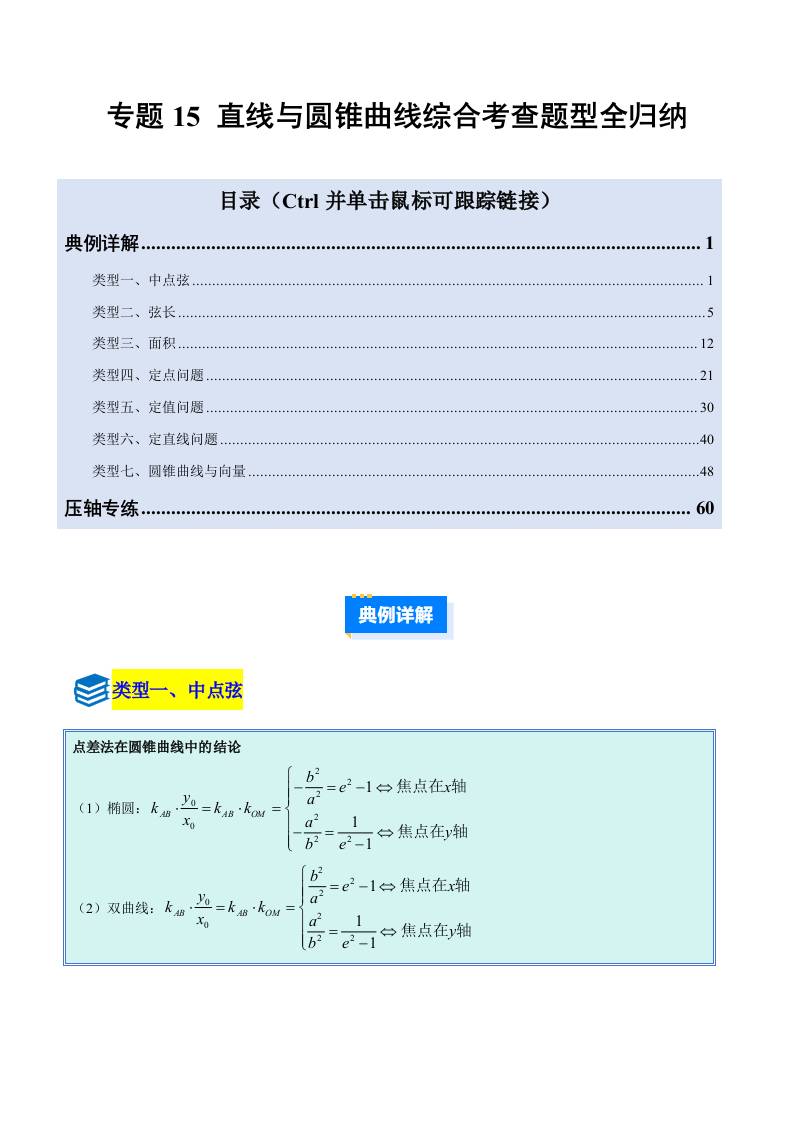 专题15 直线与圆锥曲线综合考查题型全归纳(压轴题7大类型专项训练)(解析版)