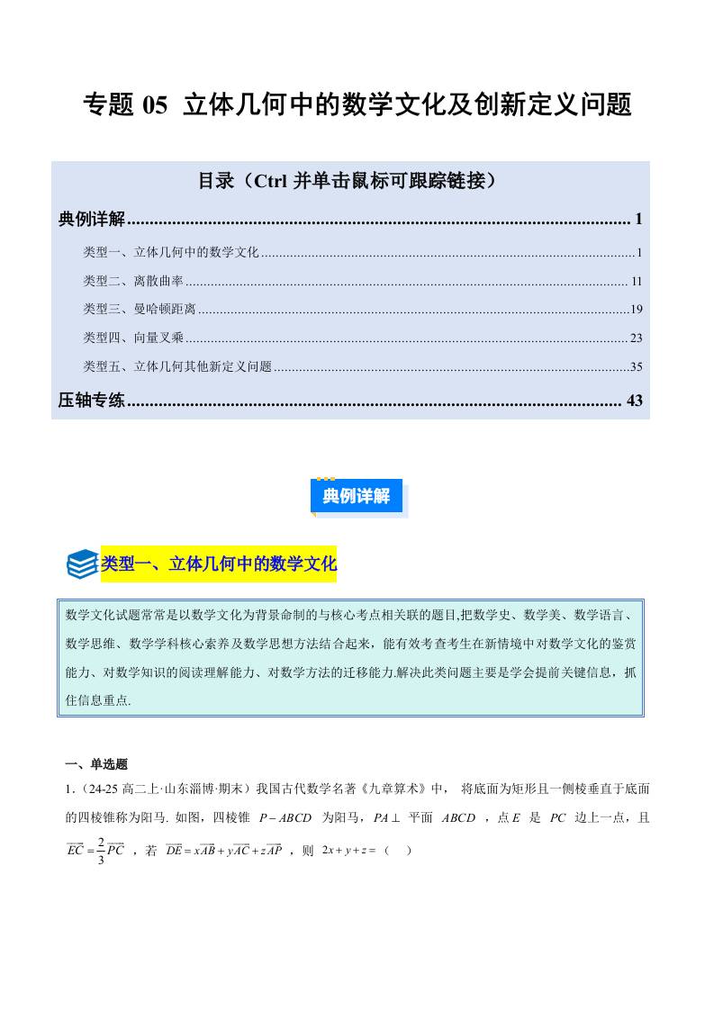 专题05 立体几何中的新文化及创新定义问题(压轴题5大类型专项训练) (学生版)