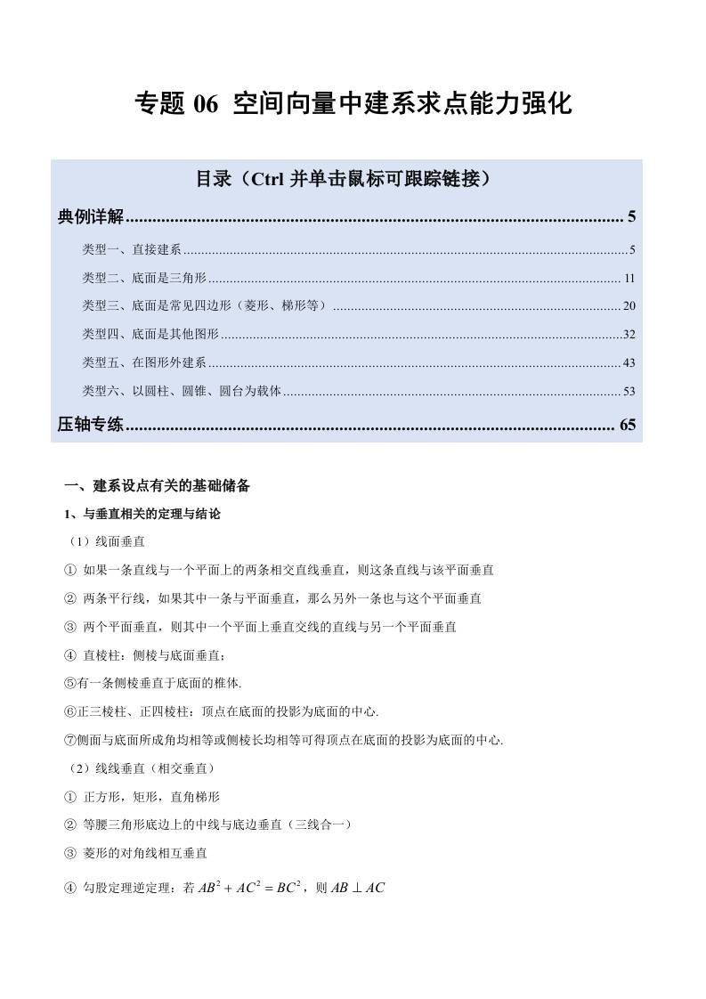 专题06 空间向量中建系求点能力强化(压轴题6大类型专项训练) (学生版)