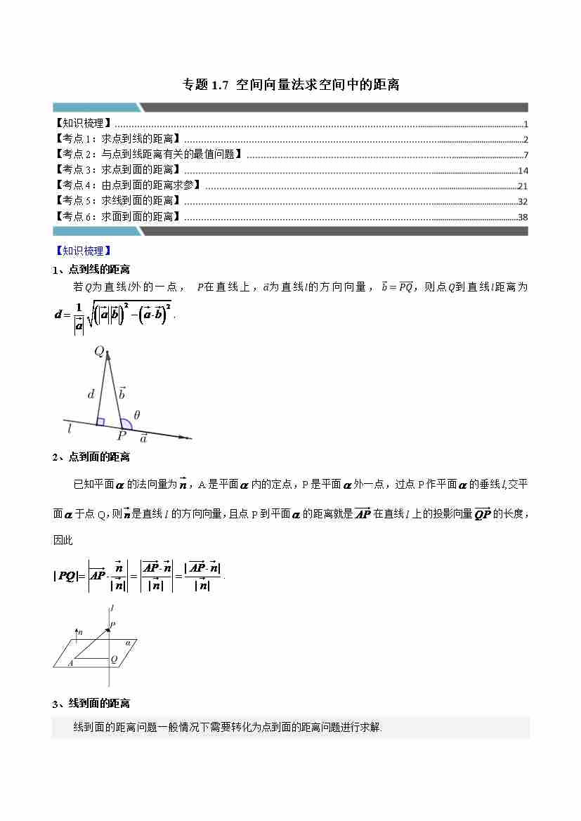 专题1.7 空间向量法求空间中的距离(6类必考点)(学生版)