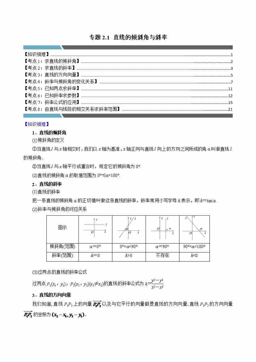专题2.1 直线的倾斜角与斜率(8类必考点)(学生版)