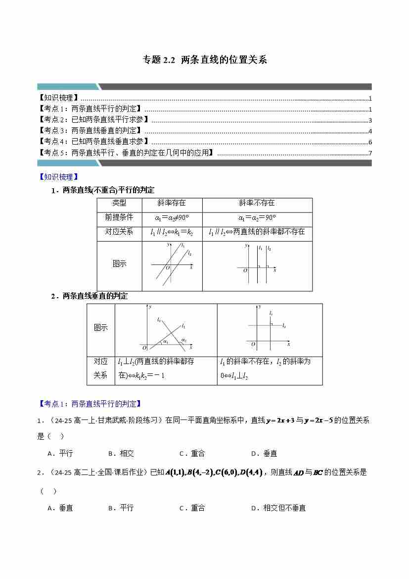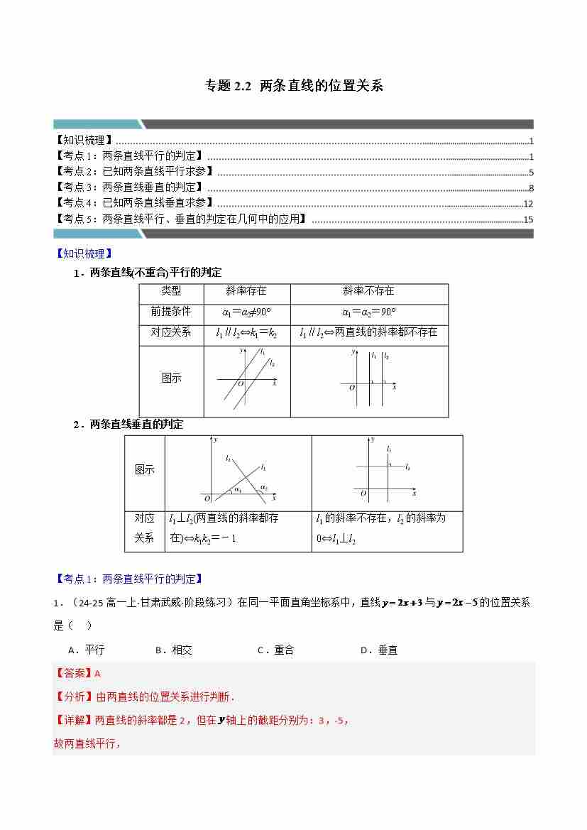 专题2.2 两条直线的位置关系(5类必考点)(学生版)