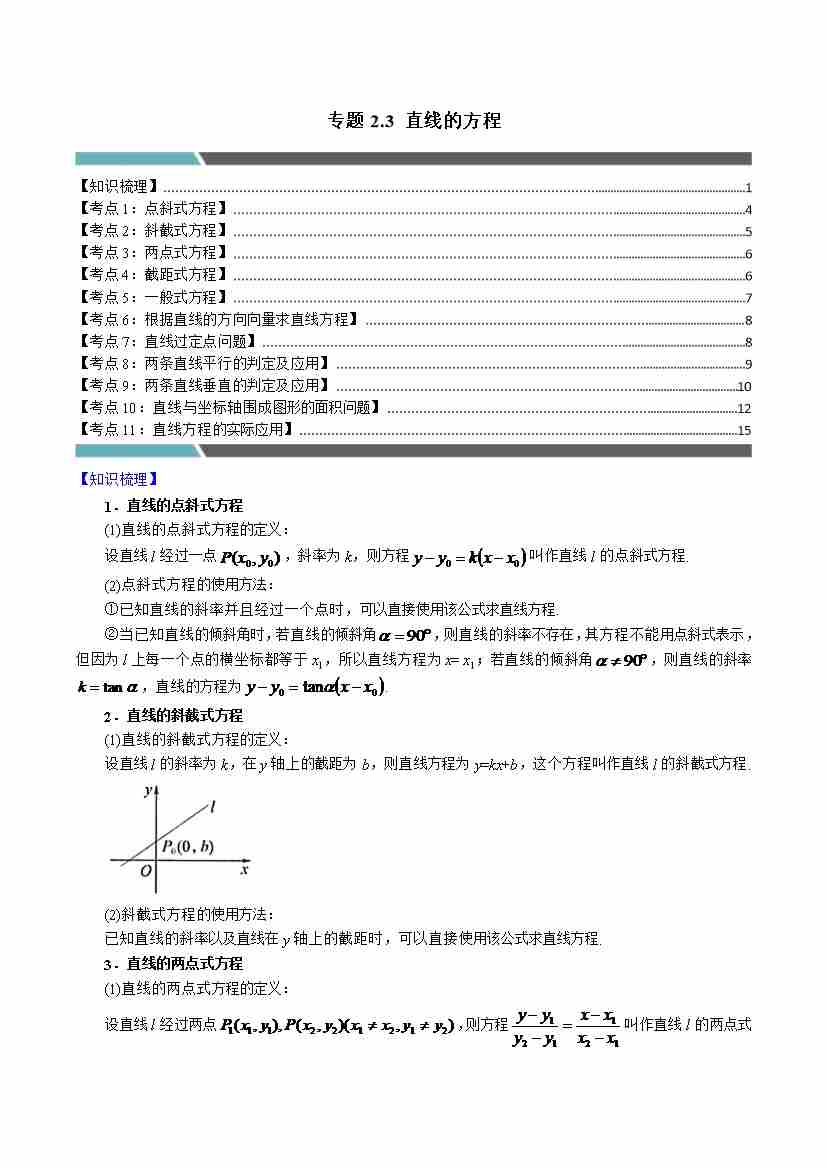专题2.3 直线的方程(11类必考点)(学生版)