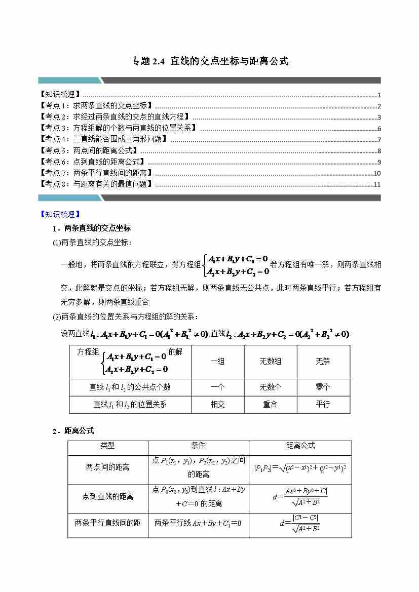 专题2.4 直线的交点坐标与距离公式(8类必考点)(学生版)