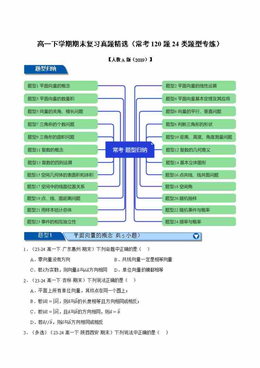 高一下学期期末复习真题精选(常考120题24类题型专练)(学生版)