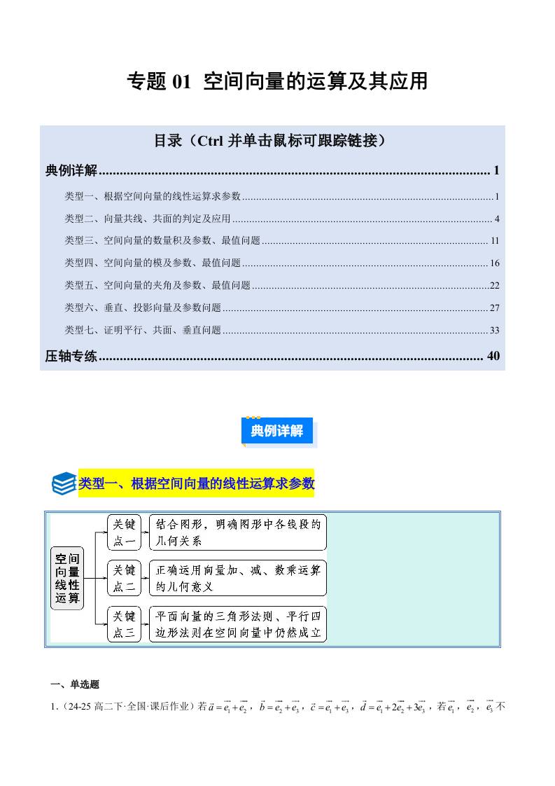 专题01 空间向量的运算及其应用(压轴题7大类型专项训练)(学生版)