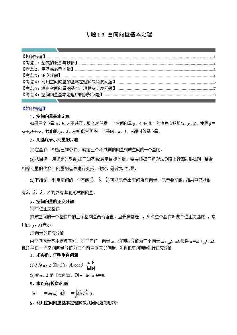 专题1.3 空间向量基本定理(6类必考点)(学生版)