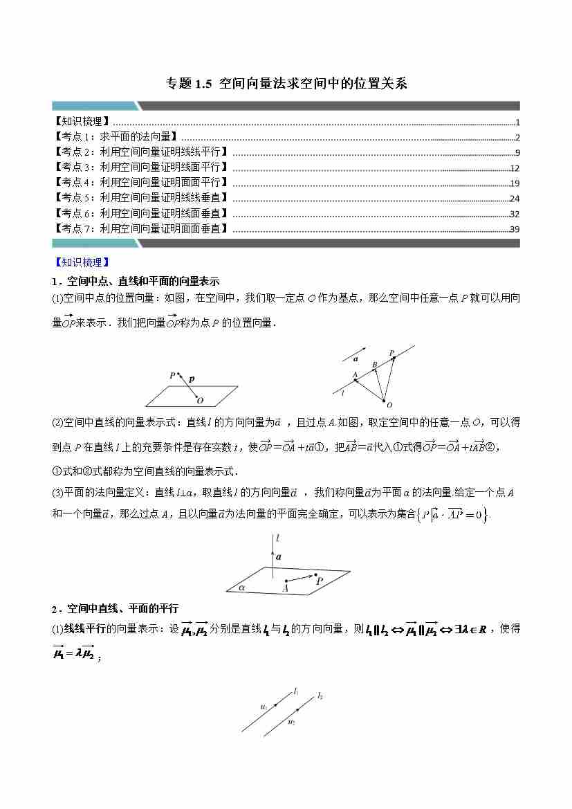 专题1.5 空间向量法求空间中的位置关系(7类必考点)(教师版)