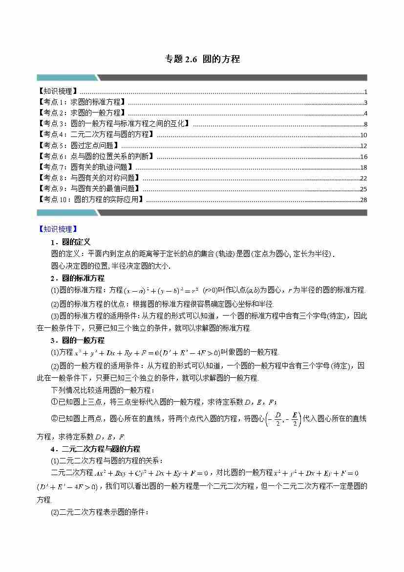 专题2.6 圆的方程(10类必考点)(学生版)