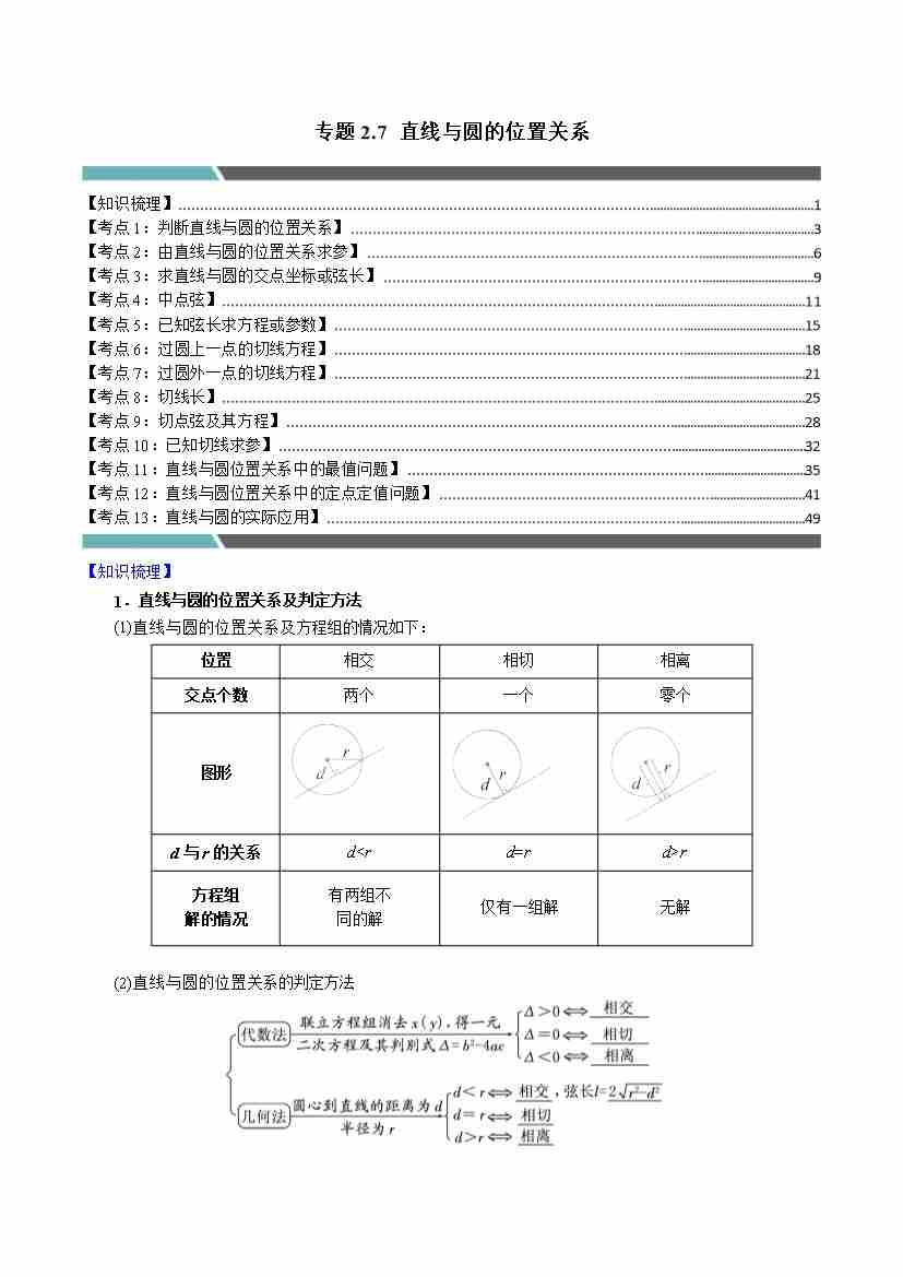 专题2.7 直线与圆的位置关系(11类必考点)(学生版)
