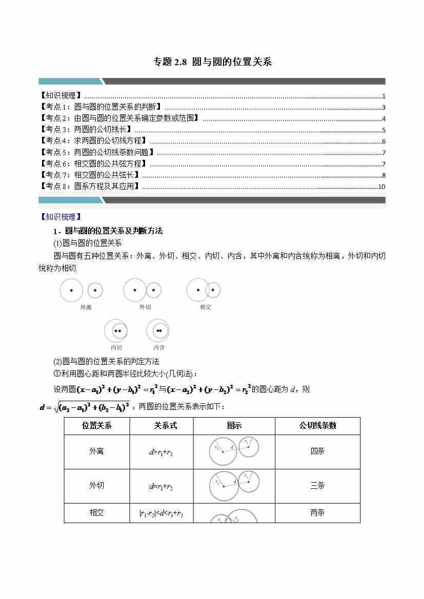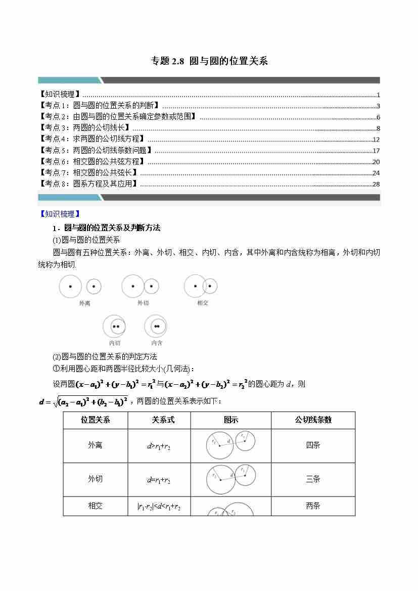 专题2.8 圆与圆的位置关系(8类必考点)(学生版)