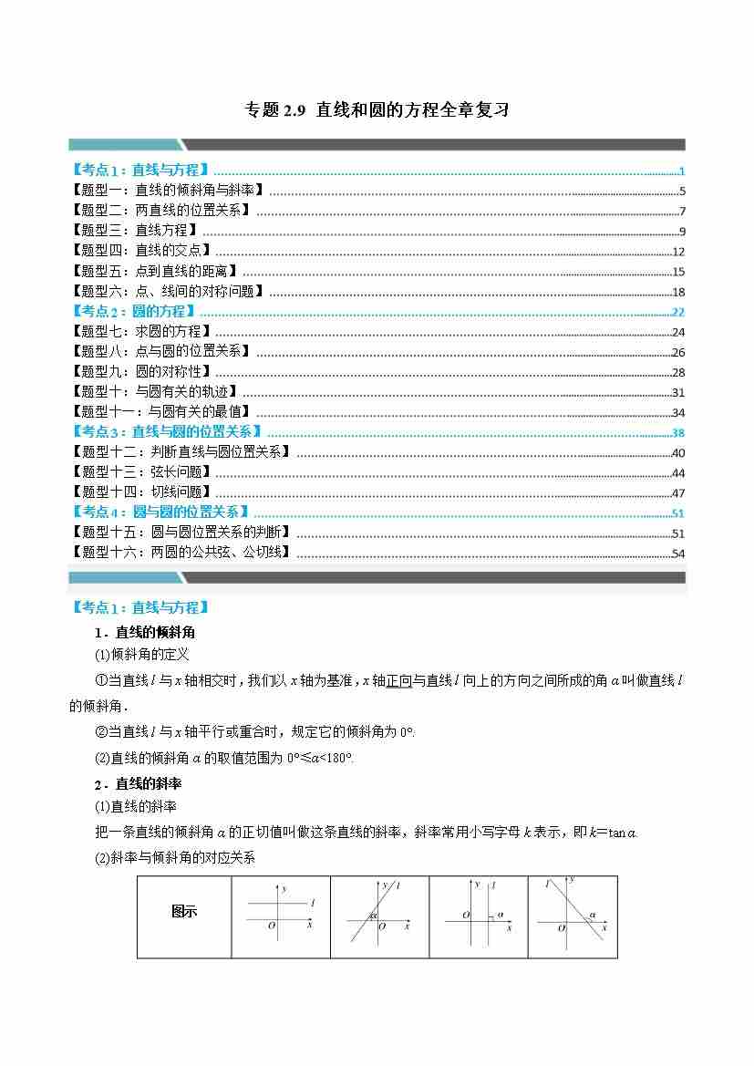 专题2.9 直线和圆的方程全章复习(4大考点16种题型)(学生版)