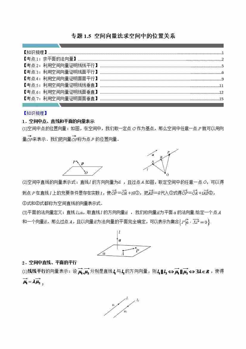 专题1.5 空间向量法求空间中的位置关系(7类必考点)(学生版)