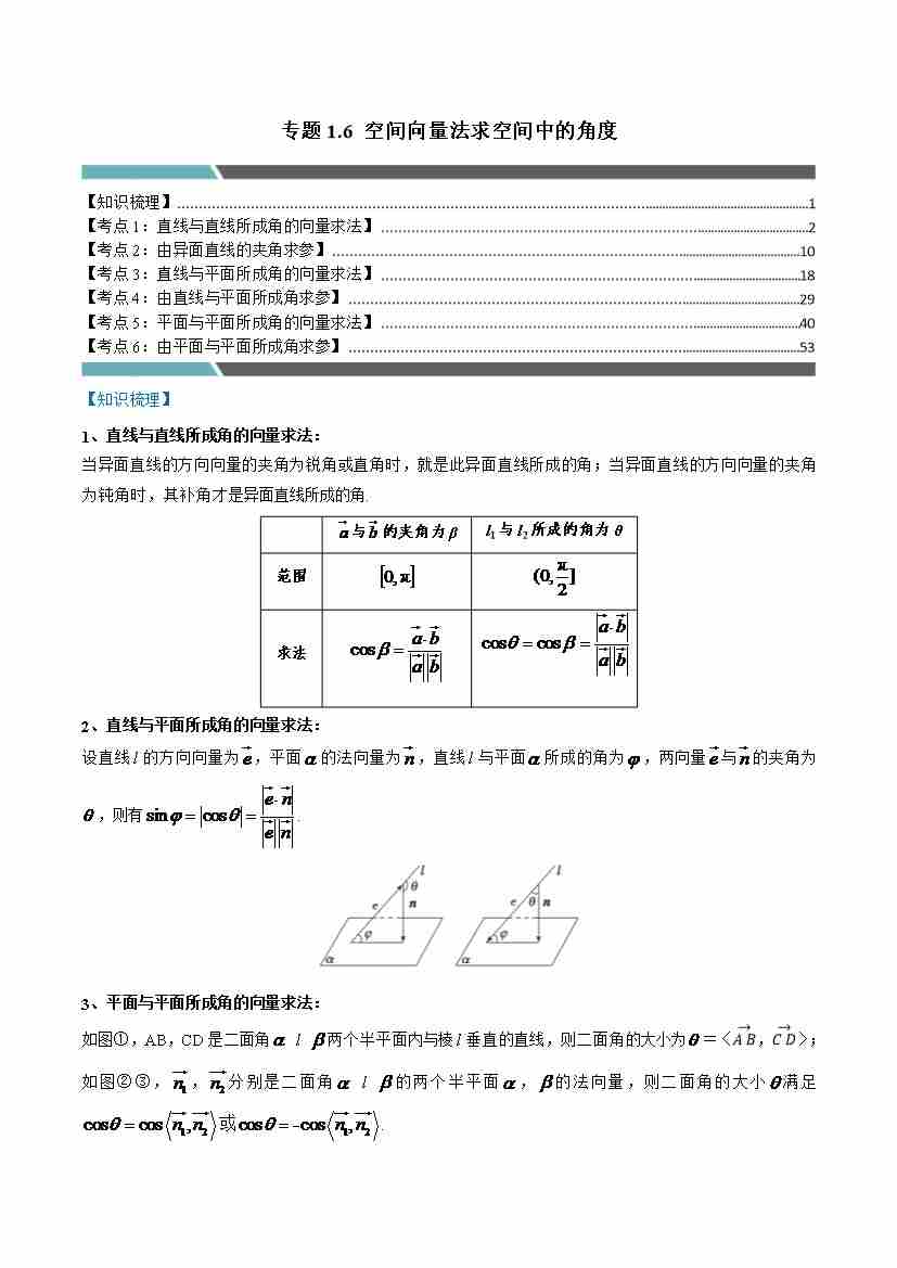 专题1.6 空间向量法求空间中的角度(6类必考点)(学生版)