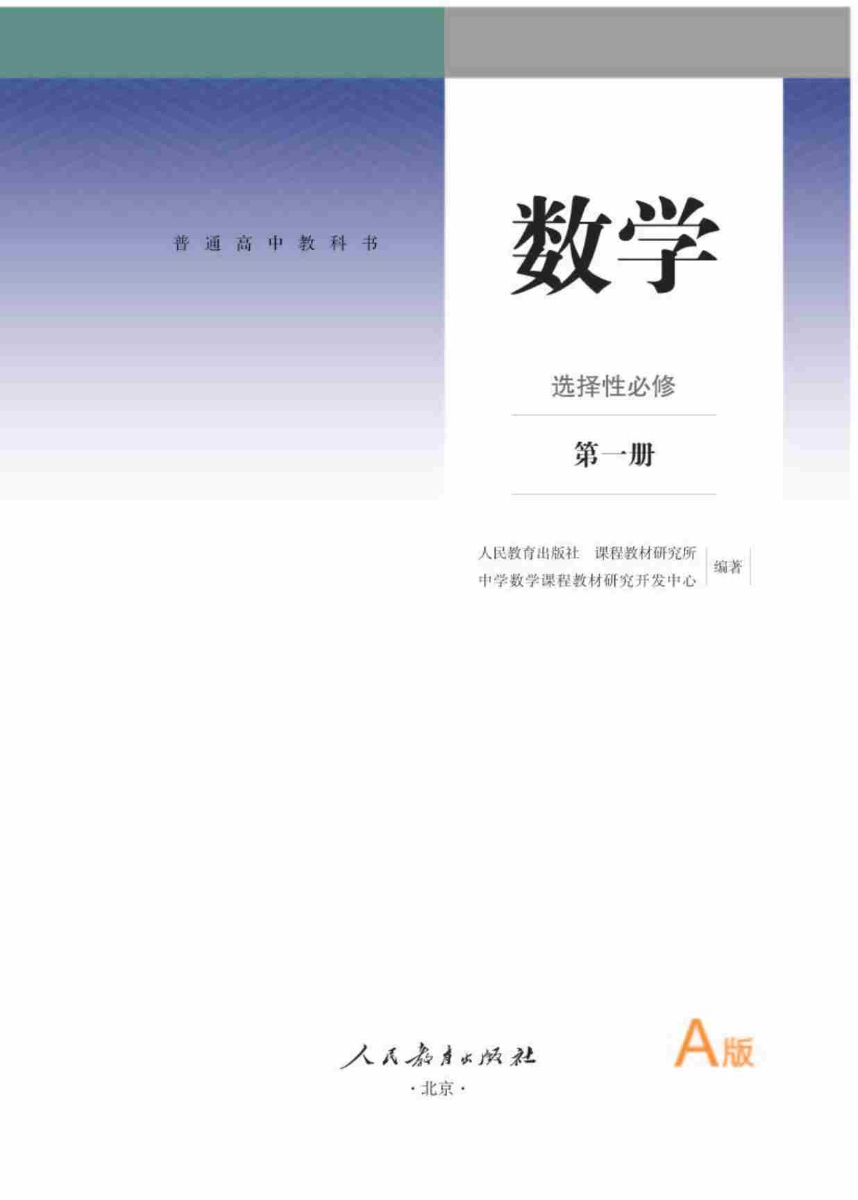 人教A版数学选修第一册【高清教材】
