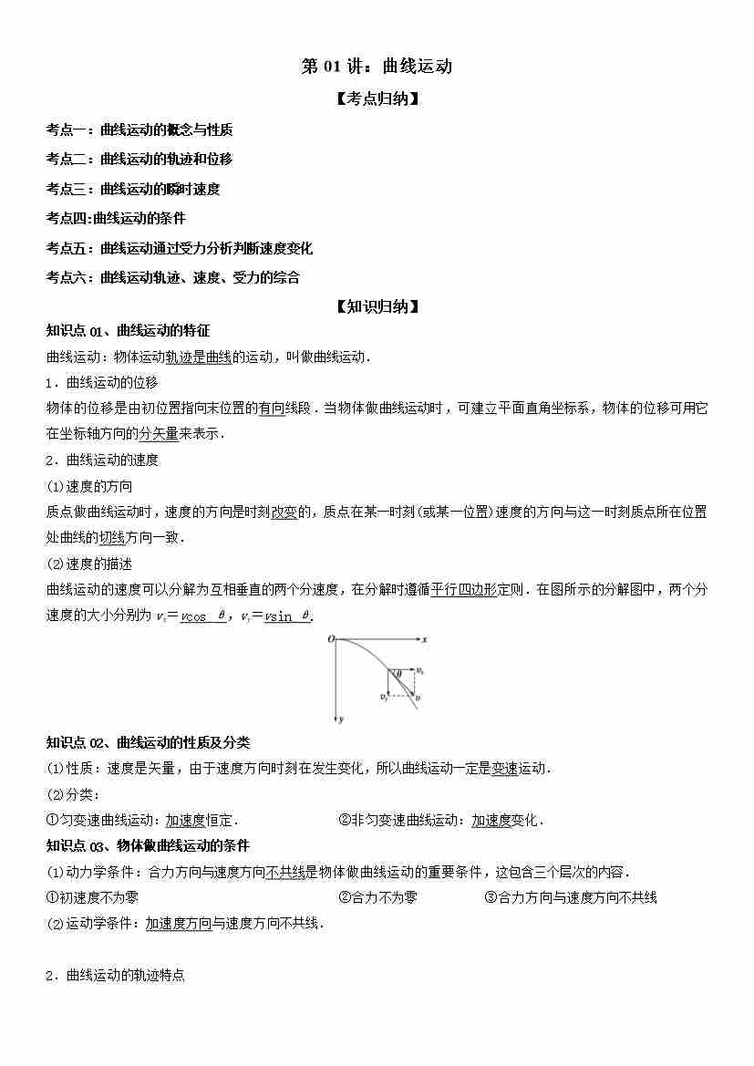 第01讲:曲线运动 学生版