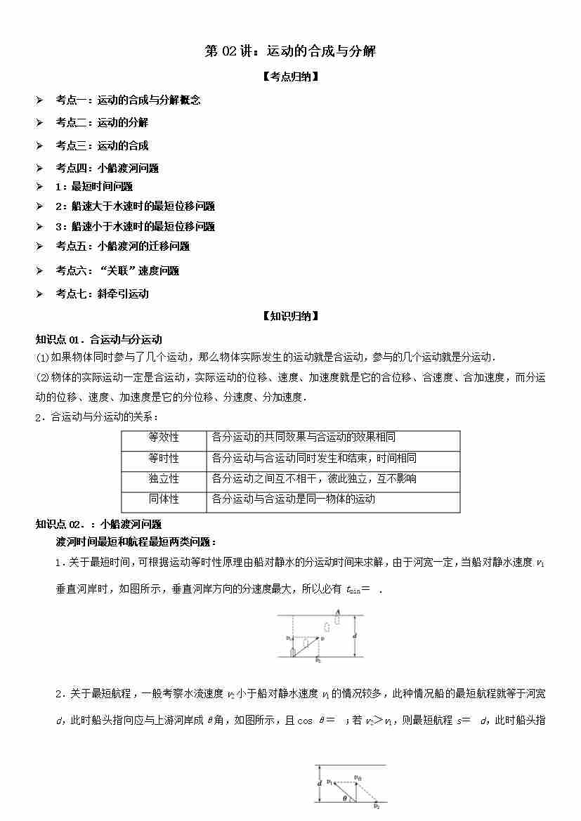 第02讲:运动的合成与分解 (学生版)