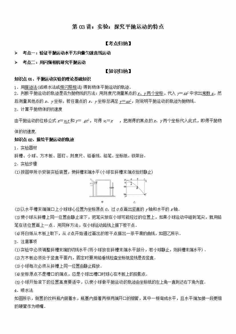 第03讲:实验:探究平抛运动的特点 (教师版)